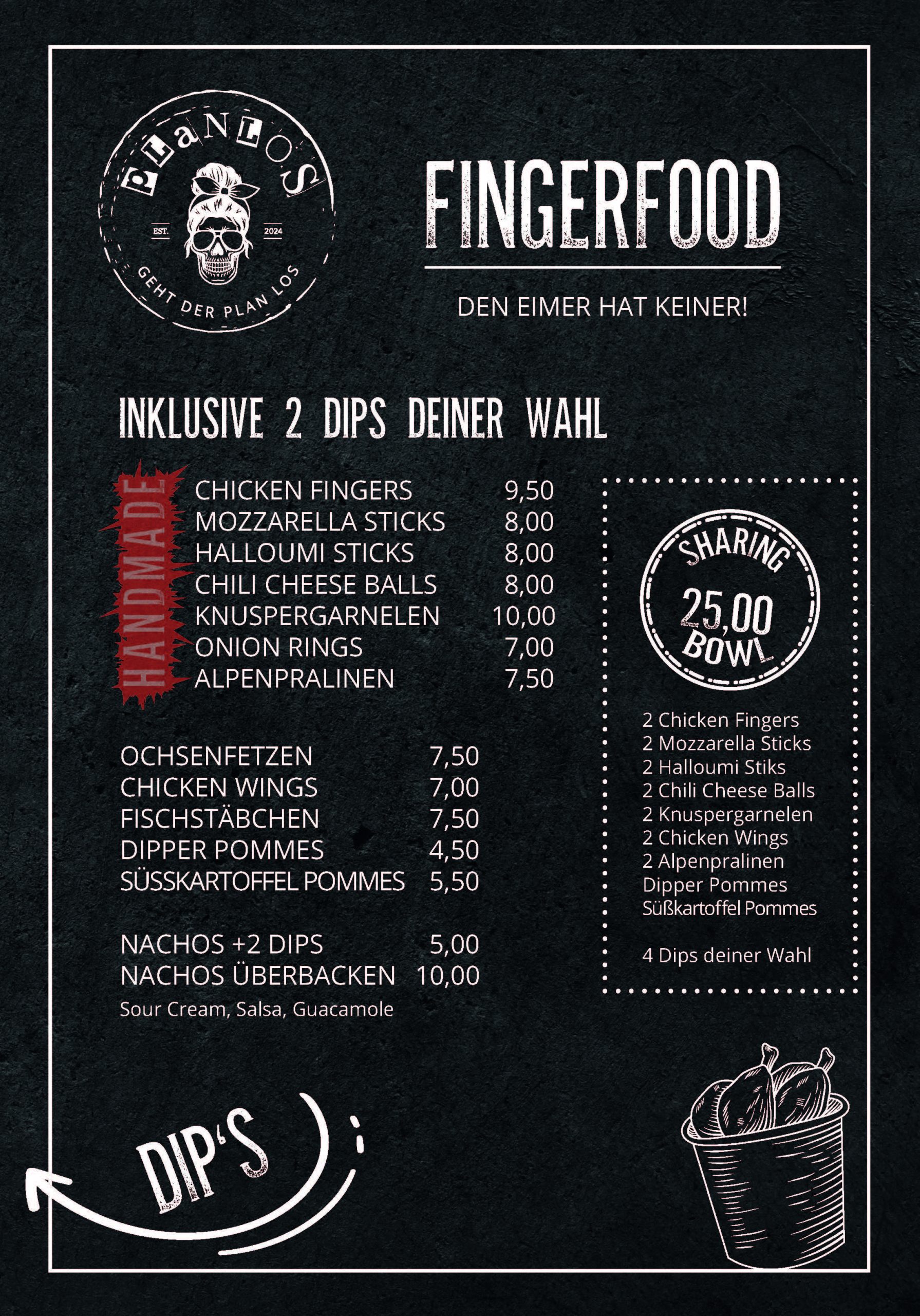 Unser Fingerfood kommt mit richtig viel Liebe aus der Küche: Knusprig, frisch und größtenteils hausgemacht – von Klassikern wie Mozzarella Sticks bis hin zu unseren eigenen Kreationen. Perfekt zum Snacken, Teilen und Genießen!